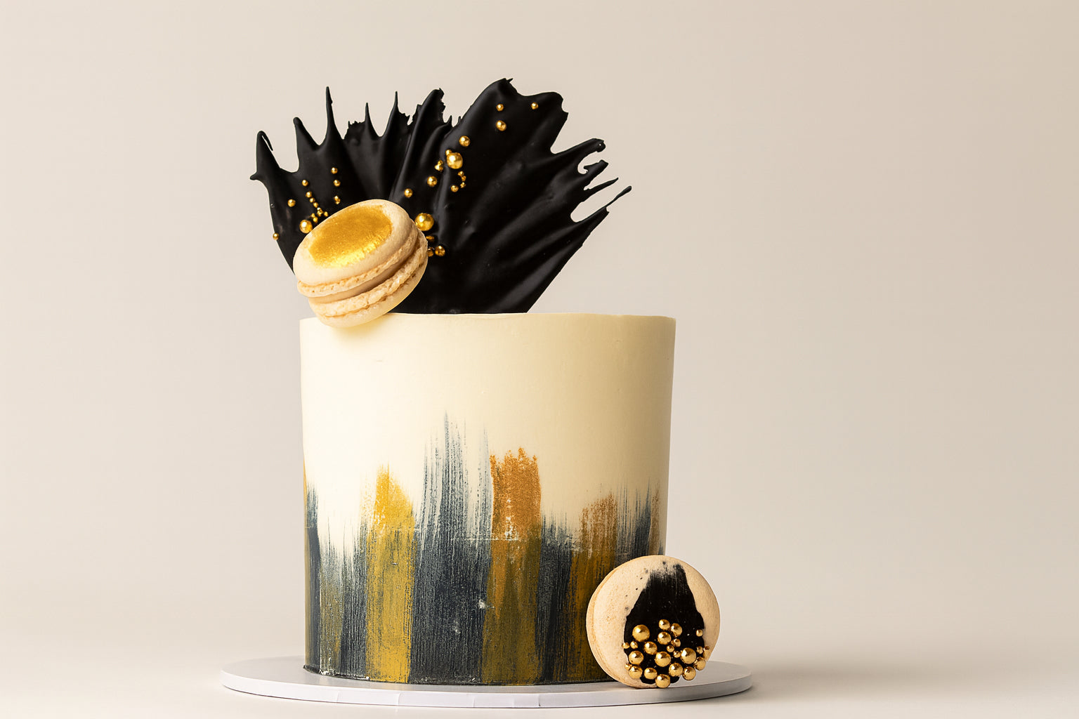 This cake brings a classy and artistic vibe, and it’s perfect for both men and women who love a refined, statement look. The mix of white, black, and gold makes it timeless and full of character.